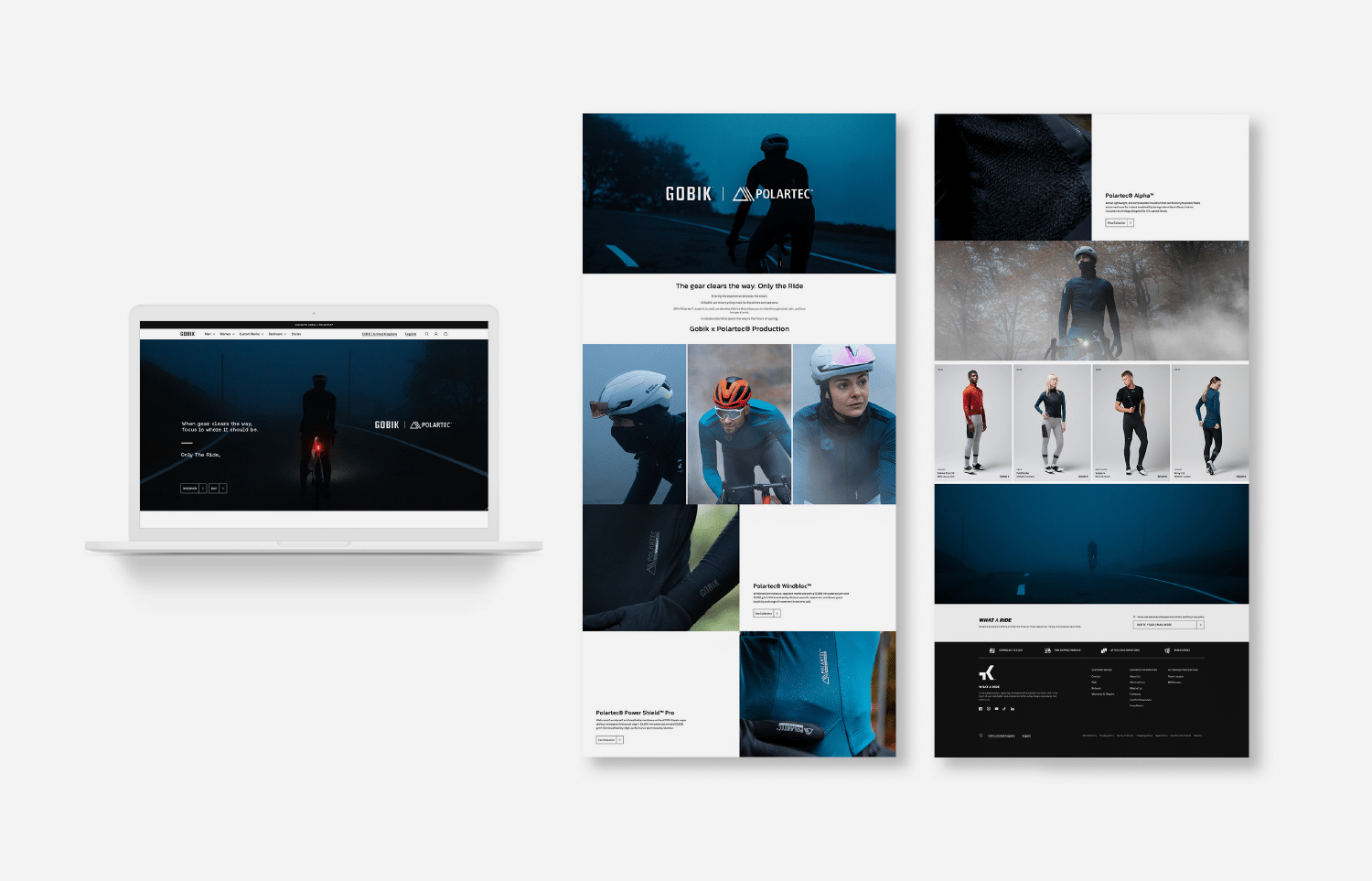 To extend the campaign beyond the film, we created digital deliverables across email, social, and web, connecting the Gobik winter collection to the emotive expression of Only The Ride. The photoshoot provided the visual foundation, allowing the atmosphere of winter cycling to carry our messaging and creative consistency across the various touchpoints.
